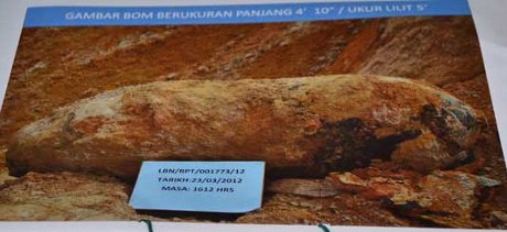 Kota Kinabalu, Sebuah bom peninggalan Perang Dunia II ditemukan di sebuah lokasi konstruksi di area pemukiman di Labuan, Kota Kinabalu, Malaysia. Syukurlah, bom seberat 450 kg ini berhasil dijinakkan oleh tim penjinak bom dari kepolisian setempat.