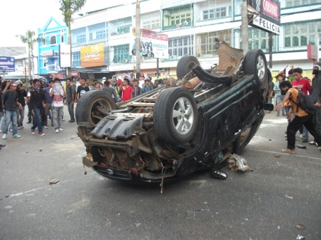 Di halaman Bank Panin, mahasiswa melihat mobil dinas. Mereka langsung melempari sambil mendorong ke ruas Jalan Ahmad Yani dan membalik kendaraan tersebut. Lalu, mahasiswa membuka penutup tangki bensin lalu membakar mobil tersebut.